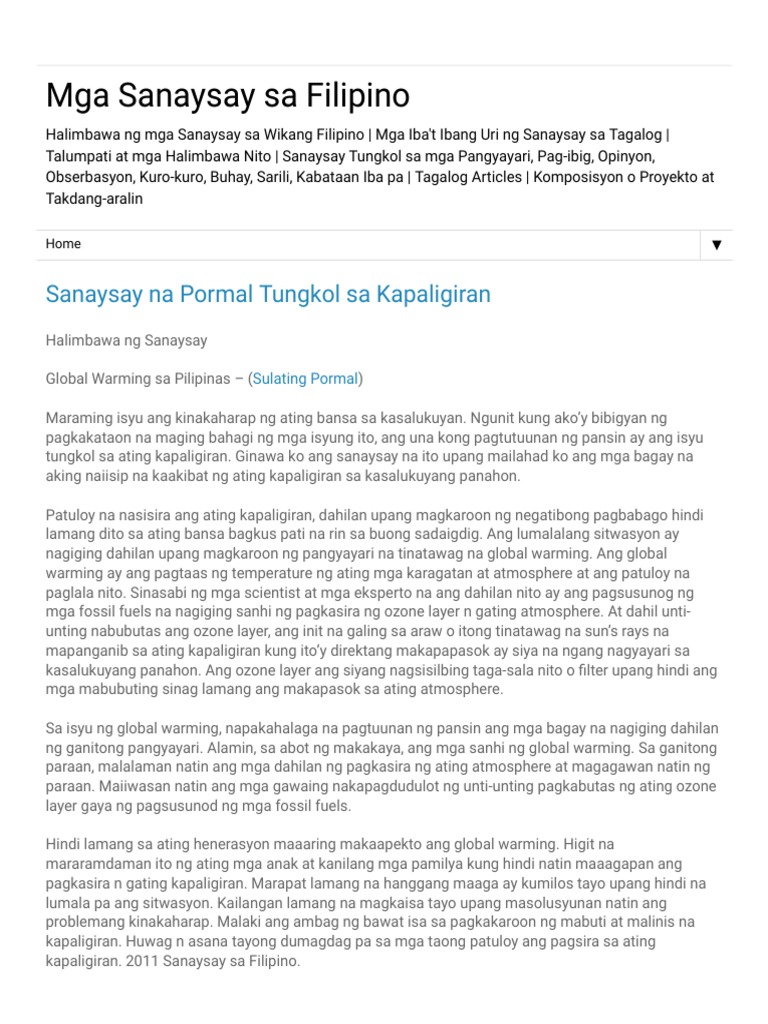 Mga Sanaysay Sa Filipino Sanaysay Na Pormal Tungkol Sa Kapaligiran Pdf