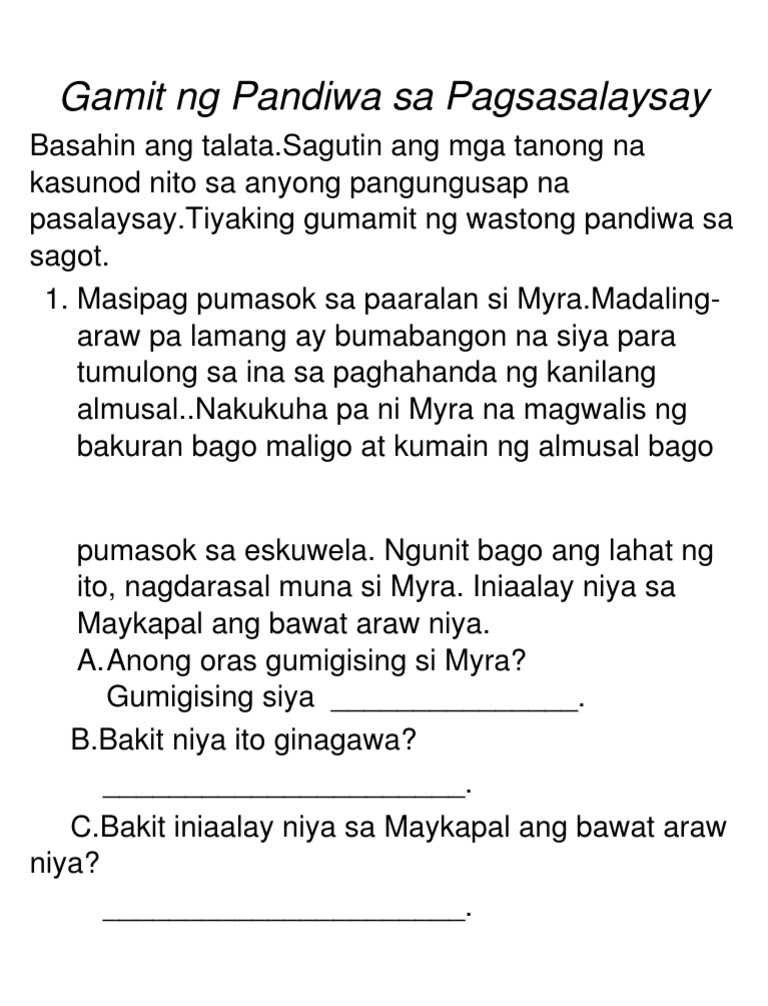 Gamit Ng Pandiwa Sa Pagsasalaysay Pdf